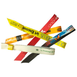 Brățările textile pot fi folosite la diferite evenimente cu o durată de desfășurare mai mare. Este rezistentă la spălare, la apă în general. Este ușoară și comodă la purtare, confecționată din bandă de poliester 100%. Timp de executare  în funcție de numarul de comenzi poate fi de la 1-5 zile. Imprimarea se face alb, negru sau full color. Comanda minimă este de 50 bucăți. Dimensiuni bățări: lungime 340 mm, lățime 15 mm. Brățări textile personalizate cu inel